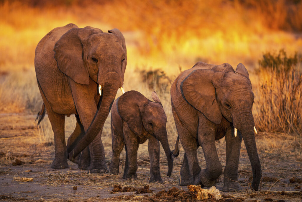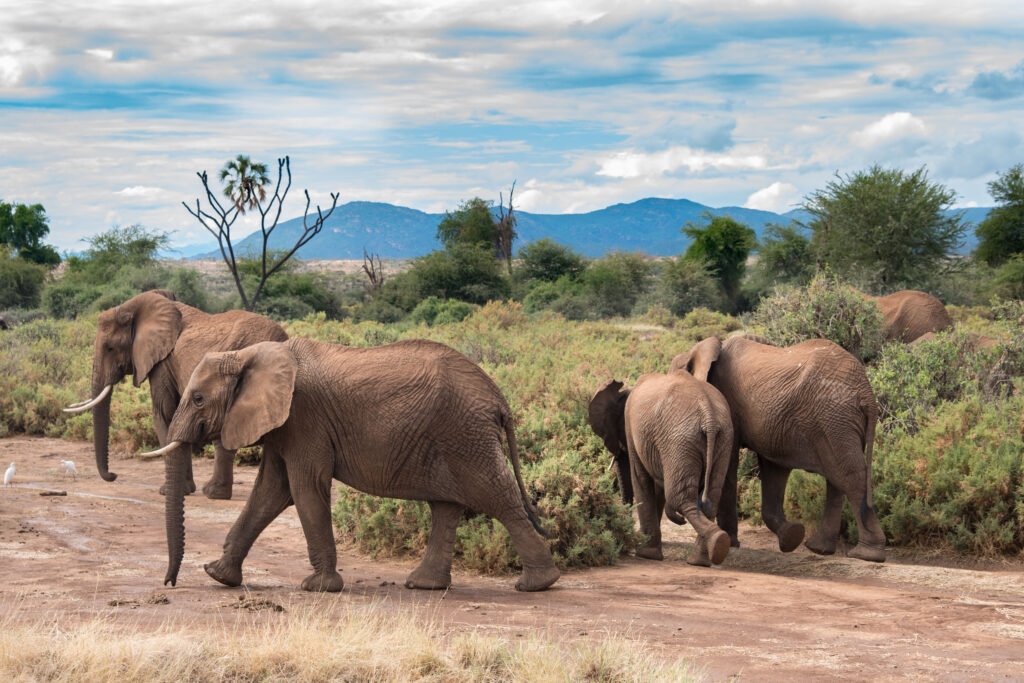 Further north, Samburu offers a more rugged and remote setting. Elephants gather along the Ewaso Ng’iro River, a lifeline in this arid landscape.